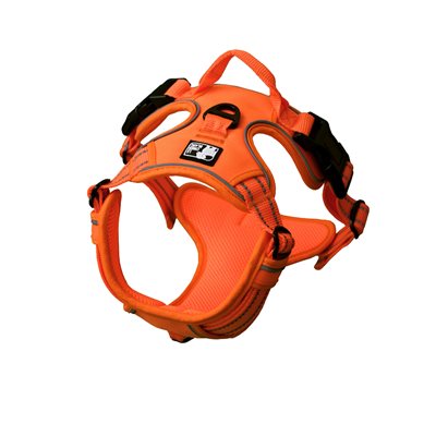 Le HARNAIS MOE dispose d’une attache frontale pour faciliter la marche au pied, ainsi que d’une attache et d’une poignée dorsales. Il est également muni de bandes réfléchissantes pour rendre le chien visible en moment de faible luminosité.