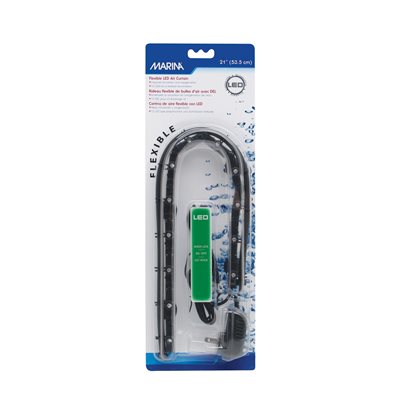 Le Rideau flexible de bulles d'air Marina avec DEL est idéal pour embellir vos paysages aquatiques en plus d'améliorer la circulation de l'eau et son oxygénation. Ce rideau est facile à installer; vous n'avez qu'à le submerger, à l'attacher au fond de l'aquarium, puis à le raccorder à une pompe à air.